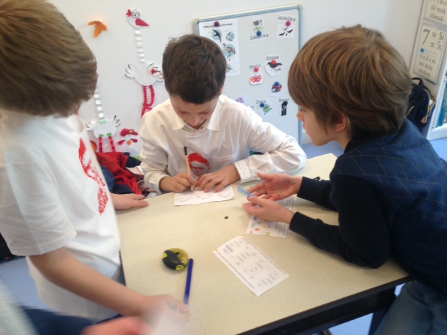 Rozpoczęliśmy dzień na sportowo skacząc 100 razy, biegając 100 sekund. Potem odbył się pokaz i defilada poszczególnych klas w ozdobionych koszulkach i drugie śniadanie oczywiście znowu z liczbą 100 w roli głównej. Tam nasi uczniowi zaśpiewali piosenkę którą sami ułożyli / klasa CM1/ na tę okazję. Po południu rozpoczęły się zawody matematyczne i ortograficzne. Rozwiązaliśmy 100 zadań z treścią z matematyki po polsku, napisaliśmy 100 słów z trudnościami ortograficznymi /klasa CE2 i CM1/ i 100 słów które umiemy już napisać klasa CE1.