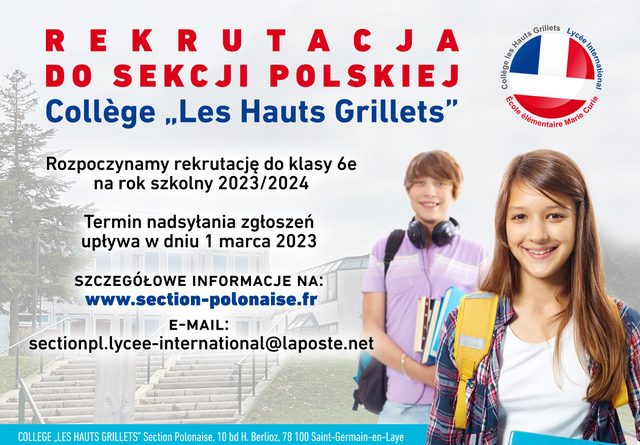 Rozpoczynamy rekrutację do klasy 6e Sekcji Polskiej w Saint-Germain-en-Laye.