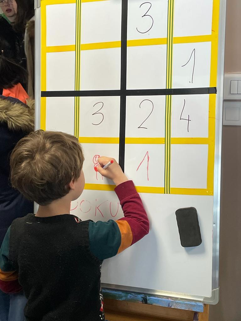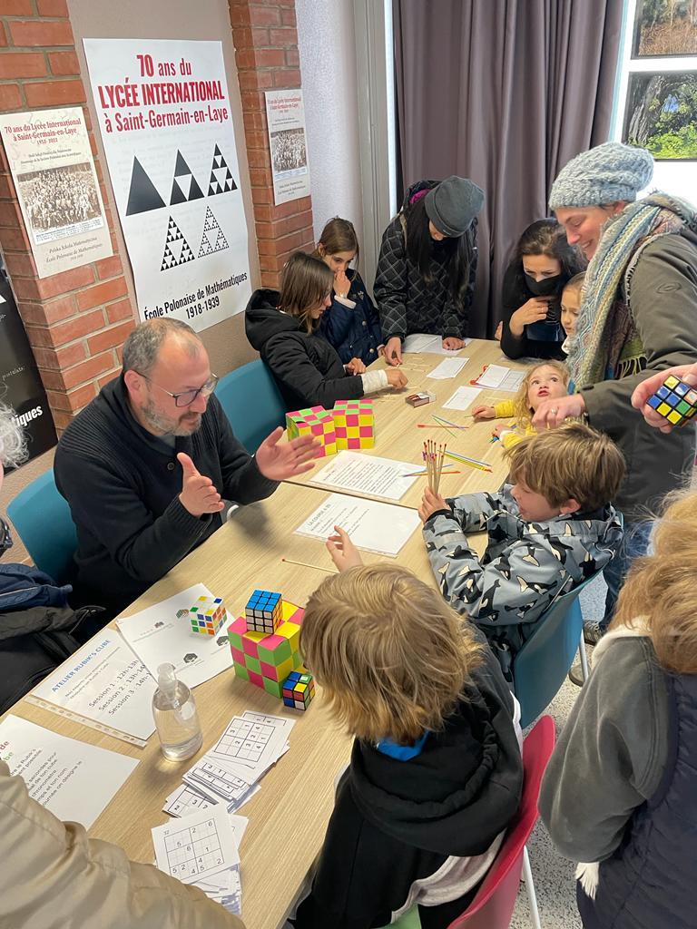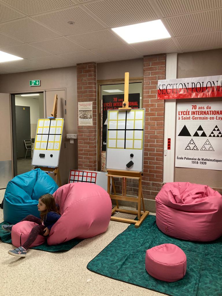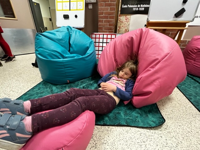 Kontynuując spacer trafialiśmy do Agory, gdzie ustawiliśmy ostatnie stanowisko – miejsce naszych sekcyjnych aktywności, czyli sławna Polska Szkoła Matematyczna, tutaj ekipa Lidii, a więc Eliza, Agnieszka, Gosia S, Gosia G i Paulina, zrealizowały wymarzony kącik dla dzieci na „burze mózgów”. Miejsce, w którym każdy mógł spróbować swoich sił w sudoku, grze w bierki czy pchełki oraz układaniu kostki Rubika „na czas”, której mistrzynią została nasza mała Margo. Na stoisku były bardzo ciekawe pozycje książkowe dotyczące historii Polskiej Szkoły Matematycznej, ulotki, plakaty, tangramy, gry logiczne i kostki zręcznościowe. Słowem raj dla wielbicieli matematyki i amatorów rozwiązywania łamigłówek stworzony przez Lidię.