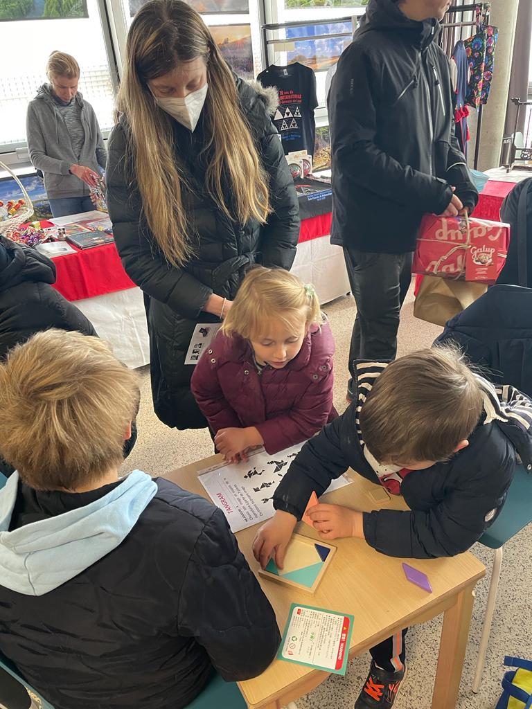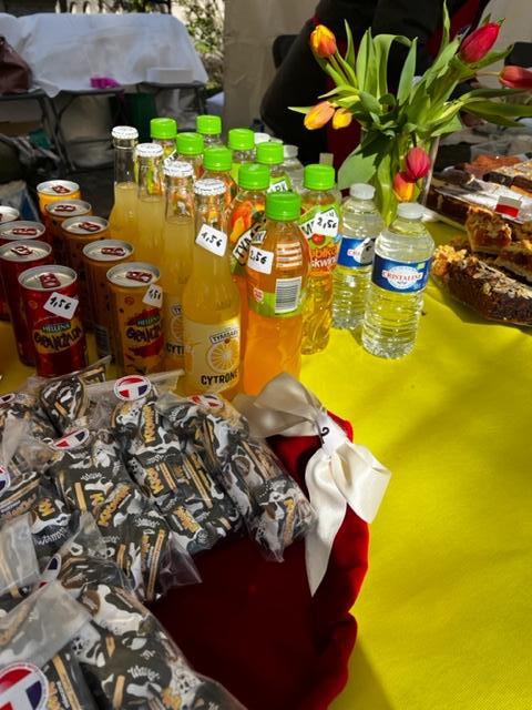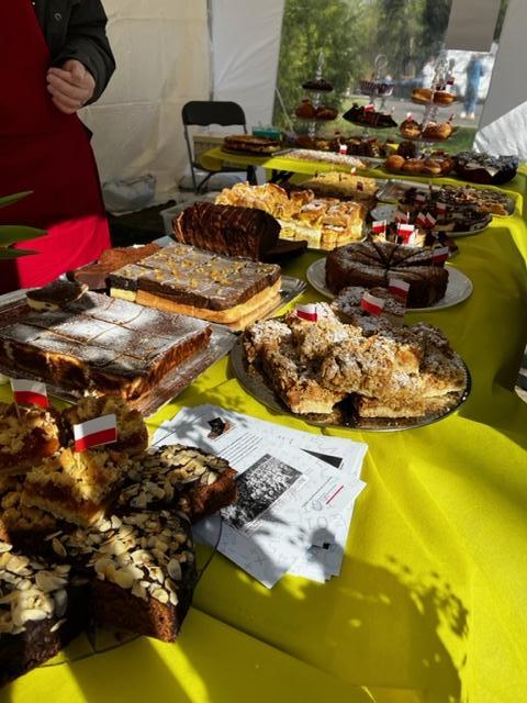 Tuż przy wejściu ustawiony był Café Pączuś czyli słodkie stanowisko z ciastami, wspaniałą ambrozją oraz kompotami polskimi. Obsługiwane było przez trzy uśmiechnięte dziewczyny: Bożenkę, Kasię i Magdę. Oczywiście nie obyło się bez pomocy wspaniałych sekcyjnych mam: widziałam: Agatę, Bożenę, Monikę, Gabrysię, Elizę, Anię i boję się wymieniać kolejne osoby, aby nikogo nie pominąć, za co serdecznie przepraszam.  Drodzy Rodzice, brak mi słów, aby wszystkim podziękować za te wspaniałości, które przygotowaliście… Mieliśmy najróżnorodniejsze i najsmaczniejsze ciasta… sprzedaliśmy wszystko do ostatniego przysłowiowego okruszka… Ludzie kupowali, kosztowali i… wracali, aby zakupić ponownie. Dziękujemy, za tę wspaniałą współpracę.