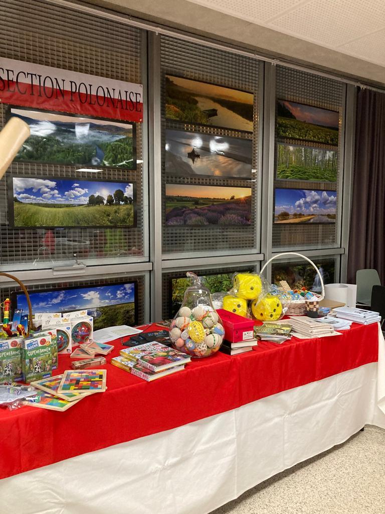I już pewnie Państwo myślicie, że to koniec… Nie… Mamy kolejną niespodziankę – tzw. „wisienkę na torcie” (w sensie dosłownym), ponieważ to były wyjątkowe obchody – 70-lecie liceum, każda sekcja została poproszona o przygotowanie ciasta. Były one oceniane przez znanego szefa cukiernika Guya Krenzera. My zwróciliśmy się z prośbą do naszej maturzystki Mariny, która przygotowała prawdziwą cukierniczą perełkę. Przepiękny tort, który wspaniale ujął idee liceum międzynarodowego i reprezentował Sekcję.  Marino jesteś naszym zwycięzcą i w imieniu Stowarzyszenia składam Ci moje wyrazy uznania i wielkie brawa!!!